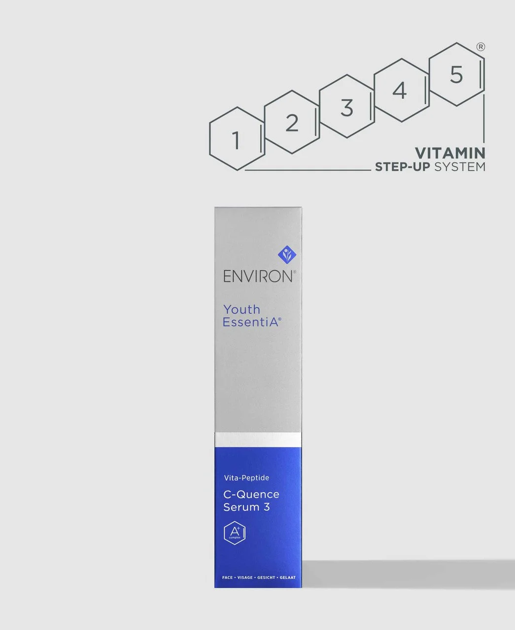The third step in our premium Vitamin A Youth EssentiA STEP-UP SYSTEM® contains a high concentration of vitamins A, C and E, as well as antioxidants and peptides that work in synergy to help you maintain a smoother looking and more youthful appearance.